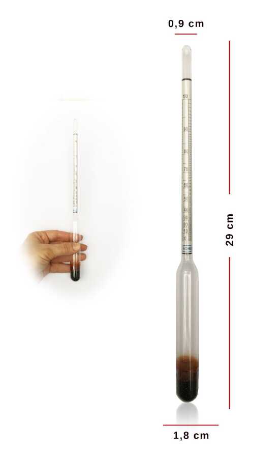 Temiz alkolmetreyi yavaşça sıvıya daldırın ve etrafındaki olası kabarcıkları engellemek için döndürün
