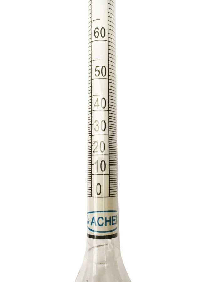 Alkolmetre durduğunda sıvı yüzeyi ile ölçek kesişiminden ölçüm yapın