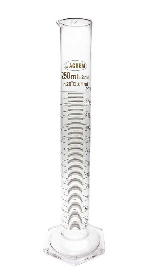 ACHEM 250ml Cam Mezür Uzun Form Kırmızı Skala