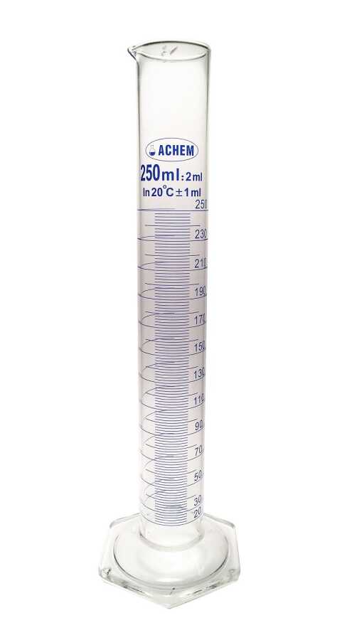 ACHEM 250ml Cam Mezür Uzun Form Mavi Skala
