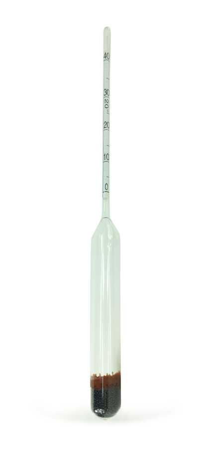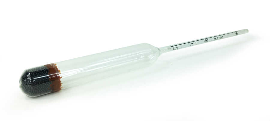Temiz alkolmetreyi yavaşça sıvıya daldırın ve etrafındaki olası kabarcıkları engellemek için döndürün