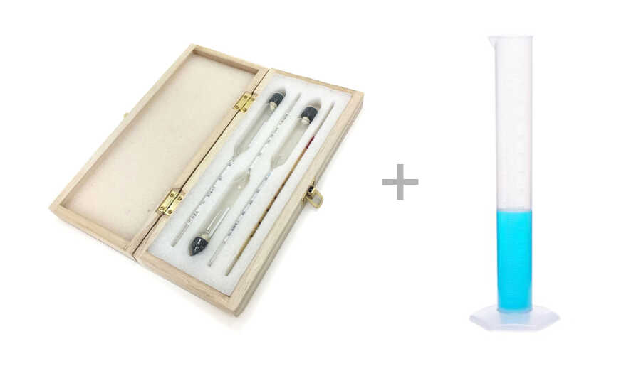 AEK-Tech Ahşap Kutulu Alkolmetre ve Mezür Seti 0-40-70-100
