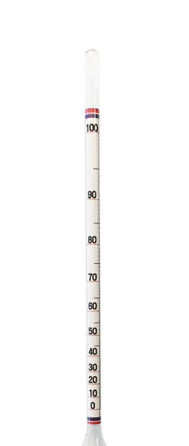 0-100 Alkolmetre Hidrometre: Etil alkol ile saf su karışımındaki etil alkol oranını ölçer