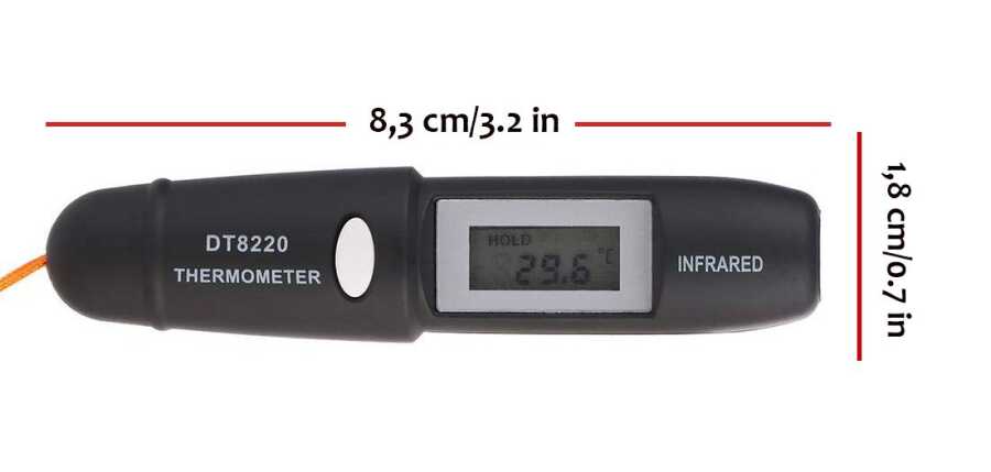 MODEL: DT8220-BlackKüçük boyutları ile oldukça kullanışlı bu termometreyi cebinizde rahatlıkla taşıyabilirsiniz.