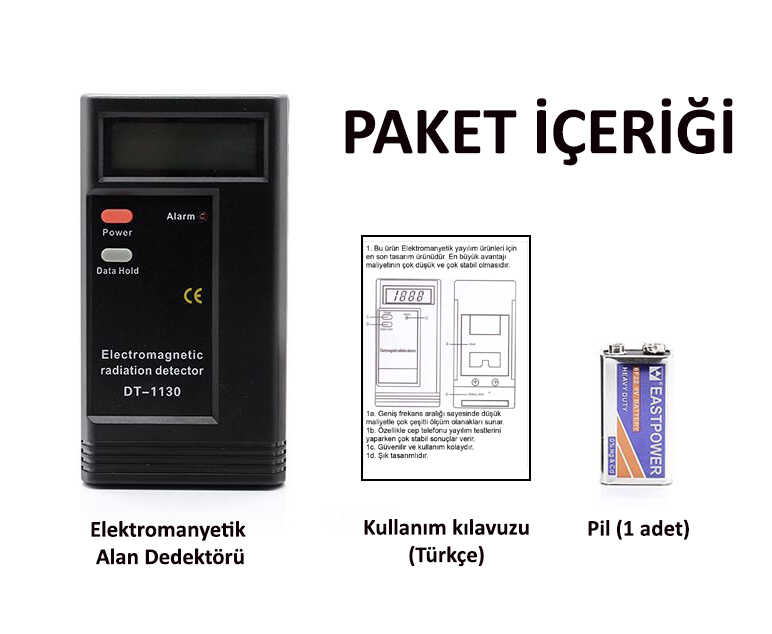 Önemli not: Bu ürün elektromanyetik radyasyonu ölçer, iyonize radyasyonu ölçmez. Cep telefonlarının yaydığı radyasyon bu cihaz ile ölçülemez.