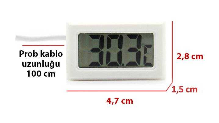 Akvaryum, buzdolabı, derin dondurucu, kuluçka, kümes, klima ile soğutulan iç mekanlar, arabada kullanım için uygun problu, panel tip dijital termometre