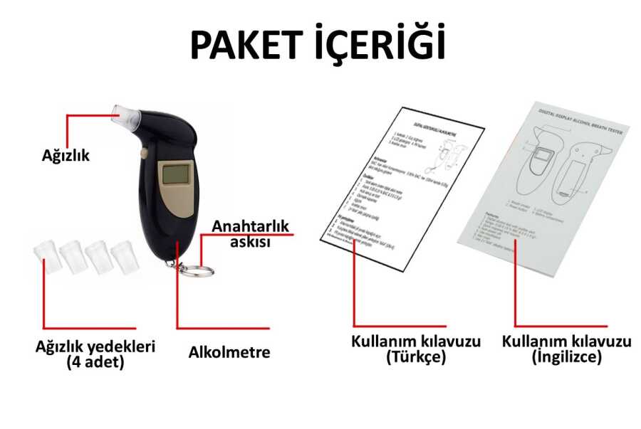 Yan tarafındaki düğmeye basıldığında cihaz 10'dan geriye doğru sayarak ölçüm için hazır hale gelir. Daha sonra bip sesini duyana kadar üflemeniz gerekir. 0,0-1,9 g/lt aralığında (0 ila 190 promil) ölçüm yapabilir. Paket içerisinde ayrıca 4 adet yedek üfleme ağızlığı vardır.