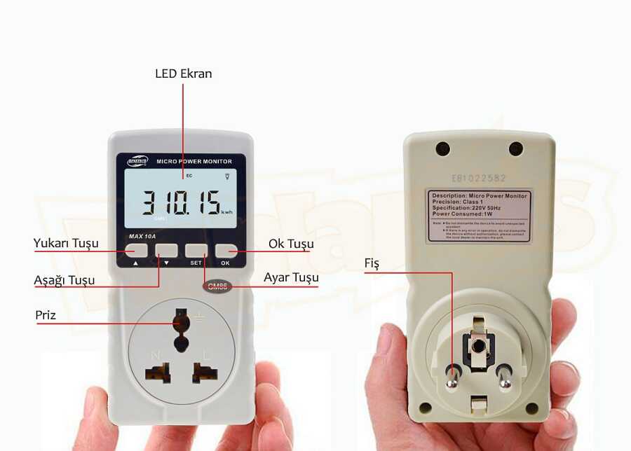 Her türlü fişe uyan watt ölçer.