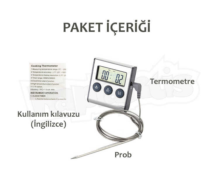 BNJ-24 Dijital Alarmlı Saplamalı Termometre Zamanlayıcı