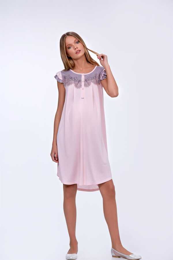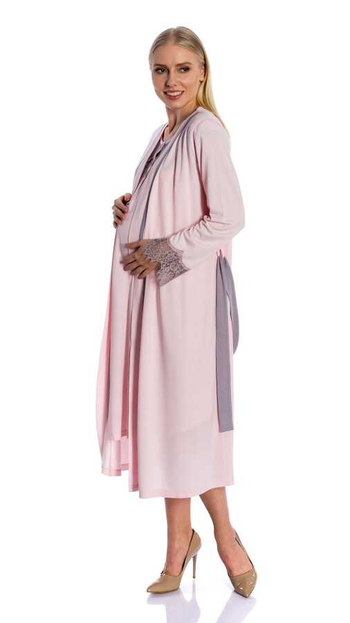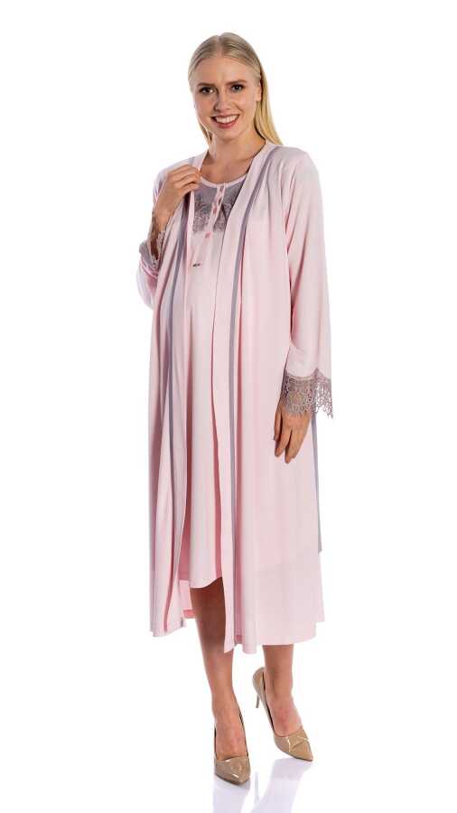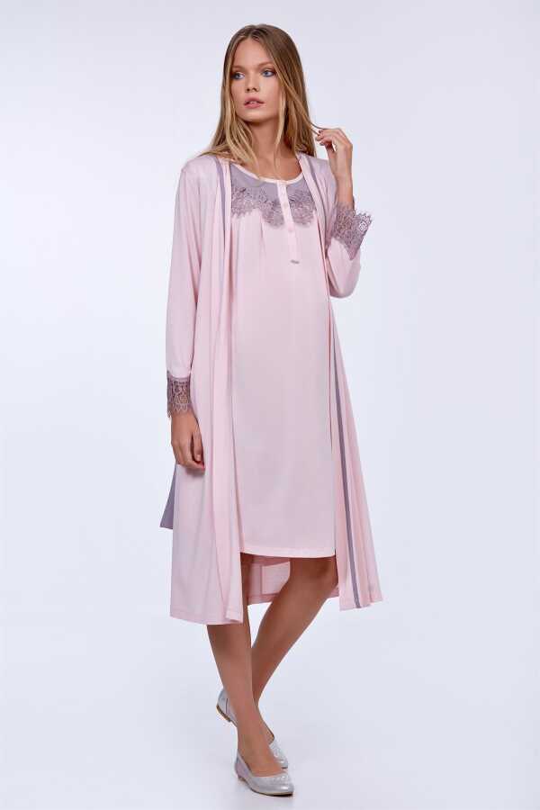 Sabahlık kol ve gecelik yaka kısmında güpür detay
