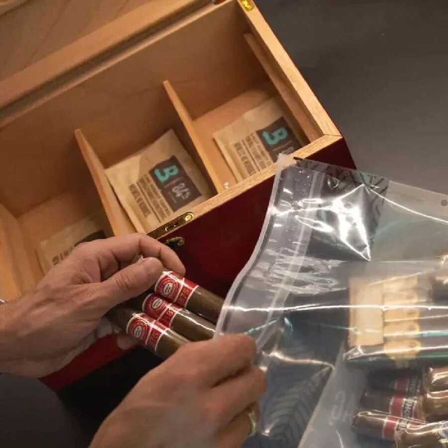 Sezonlama işlemi için Boveda'nın poşetini açıp humidorun ıçerisine yerleştirin ve kapağı kapatın