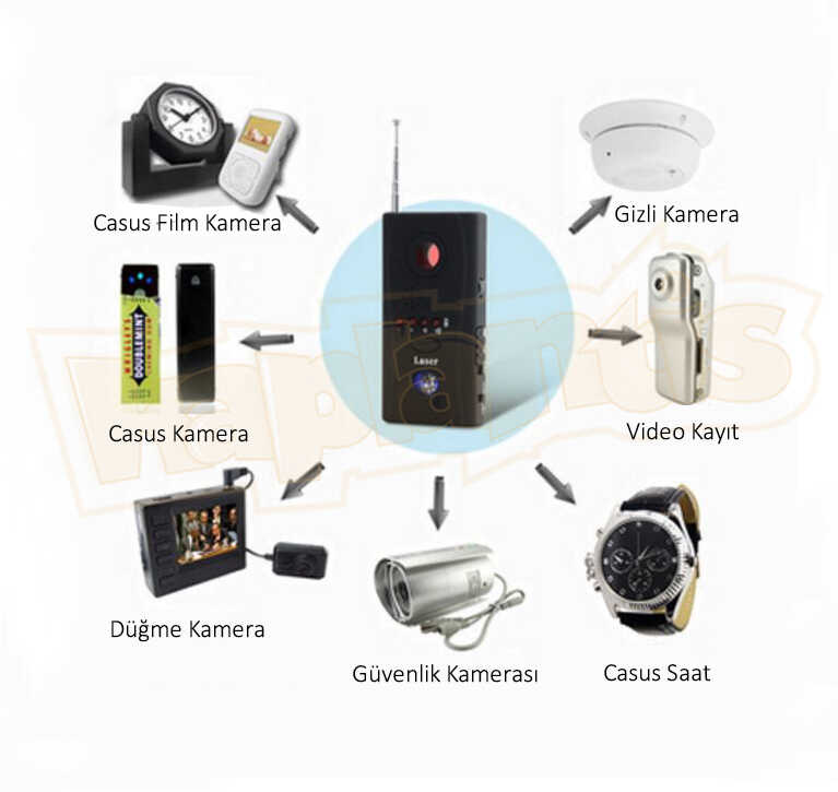 Gizli ve saklanmış kameralar, RF Sinyalleri, hile yapmaya yarayan türlü aletlerden çıkan sinyalleri tespit etmeye yarayan dedektör