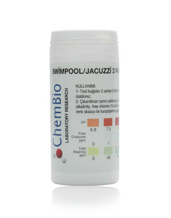 ChemBio Havuz PH Sertlik Klor Alkalinite Test Kiti 3'lü 50ad. PH, toplam sertlik, toplam klor, serbest klor ve toplam alkalinite ölçüm yapabileceğiniz test şeritleri (50 adet)