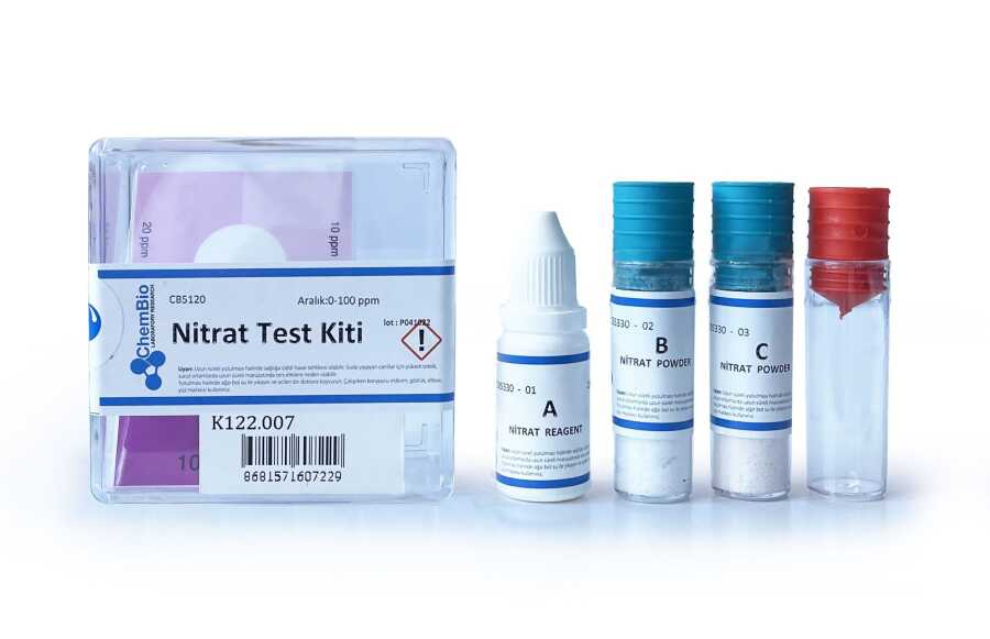 1. Numune kabı ya da deney tüpüne 5 ml örnek alınır. 2. 6 damla Nitrat-A reagent, 2 mikrokaşık Nitrat-B powder eklenir, 1 dakika boyunca çalkalanır ve 7 dk beklenir. 3. Sonrasında, 1 mikrokaşık Nitrat-C powder eklenir, çözünene kadar çalkalanır ve 4 dk beklenir. 4. Bekleme süresi sonunda renk skalasıyla karşılaştırma yapılarak analiz sonucu ppm olarak kaydedilir.