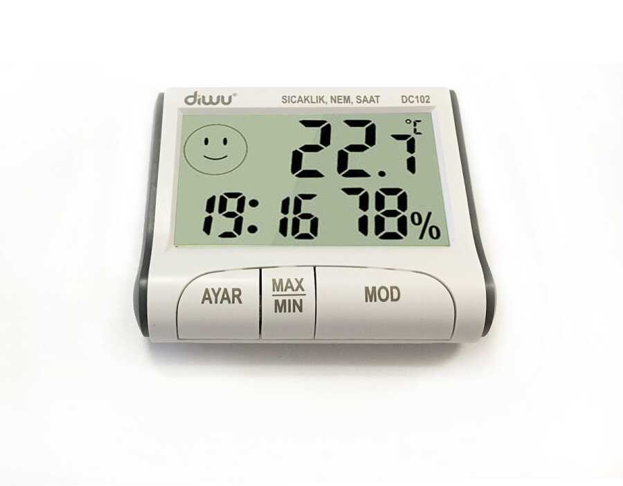 It does not only measure temperature and humidity, dc102 also shows the time