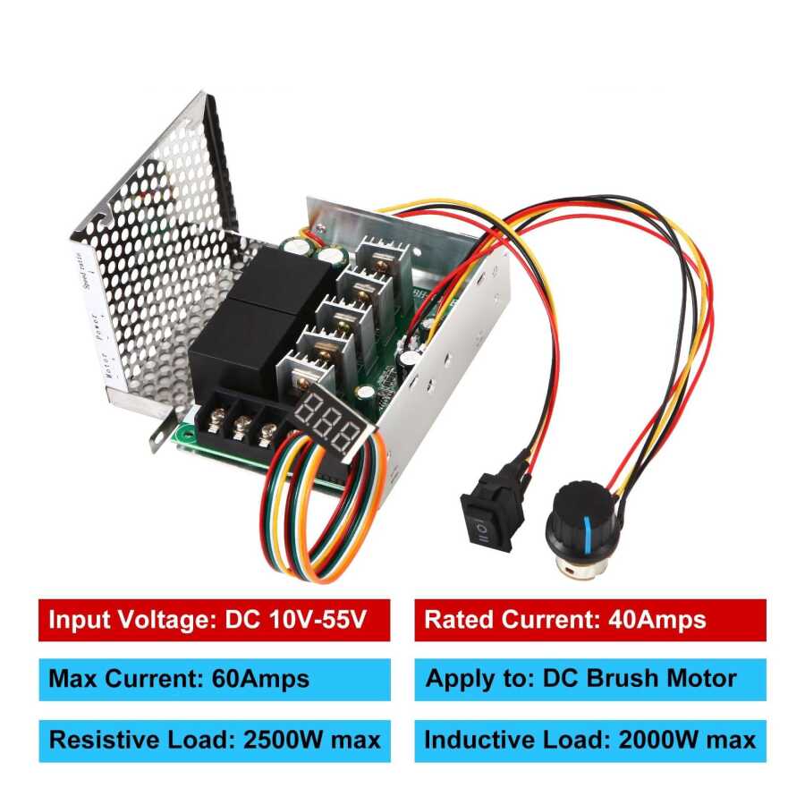 40A nominal akım çıkışına sahiptir ve çoğu DC motorun özelliklerine uyum sağlayarak 12V, 24V ve 36V voltajlarda çalışabilir