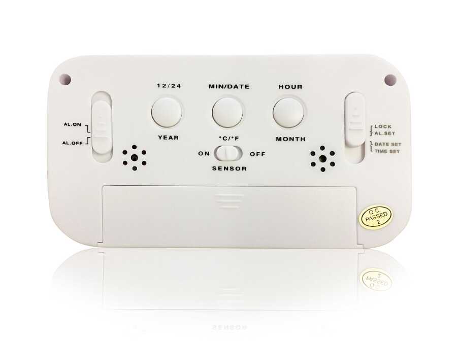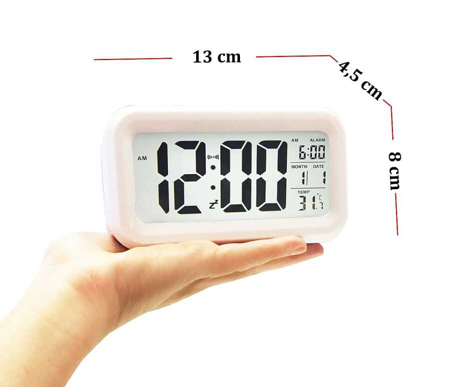 Alarm, takvim ve termometre fonksiyonu. Tüm ayarlar arka tarafta ayrı düğmelerle kolayca yapılabilir