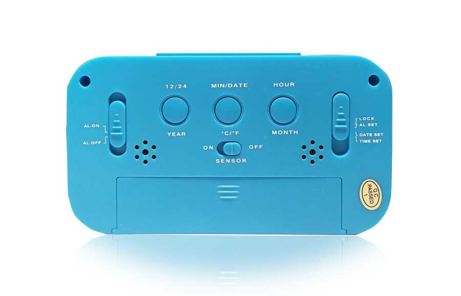 Alarm, takvim ve termometre fonksiyonu. Tüm ayarlar arka tarafta ayrı düğmelerle kolayca yapılabilir
