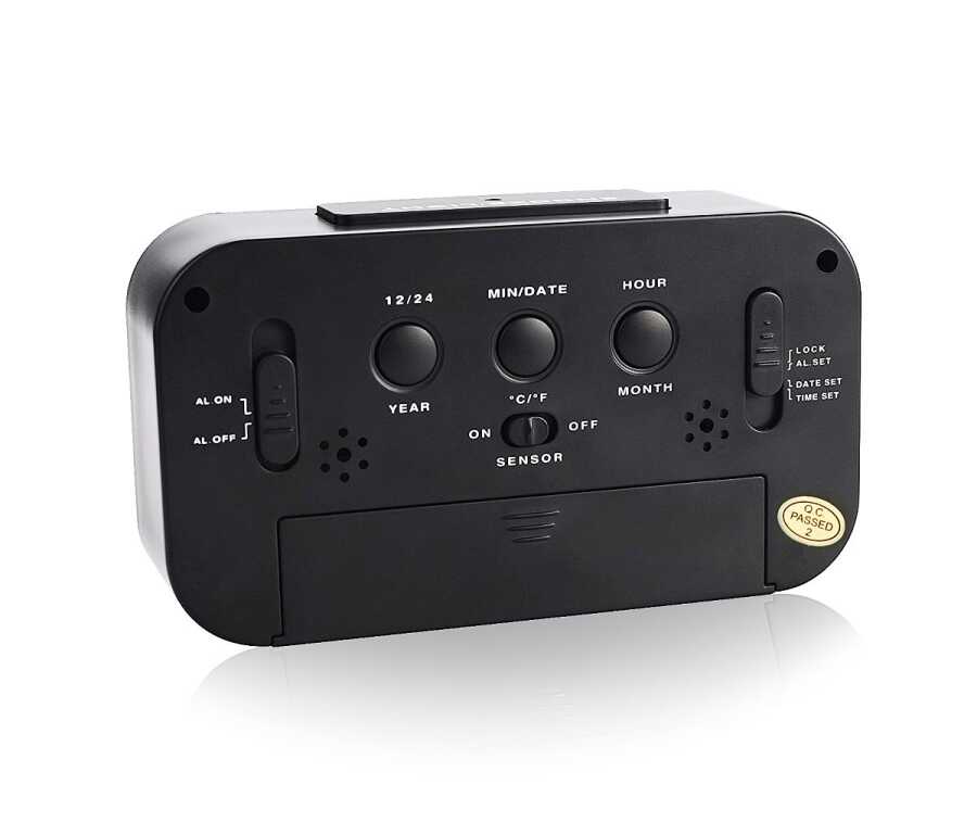Alarm, takvim ve termometre fonksiyonu. Tüm ayarlar arka tarafta ayrı düğmelerle kolayca yapılabilir