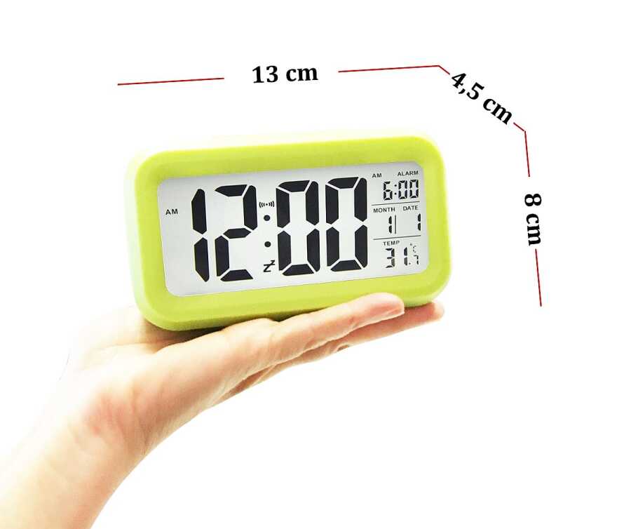 Alarm, takvim ve termometre fonksiyonu. Tüm ayarlar arka tarafta ayrı düğmelerle kolayca yapılabilir