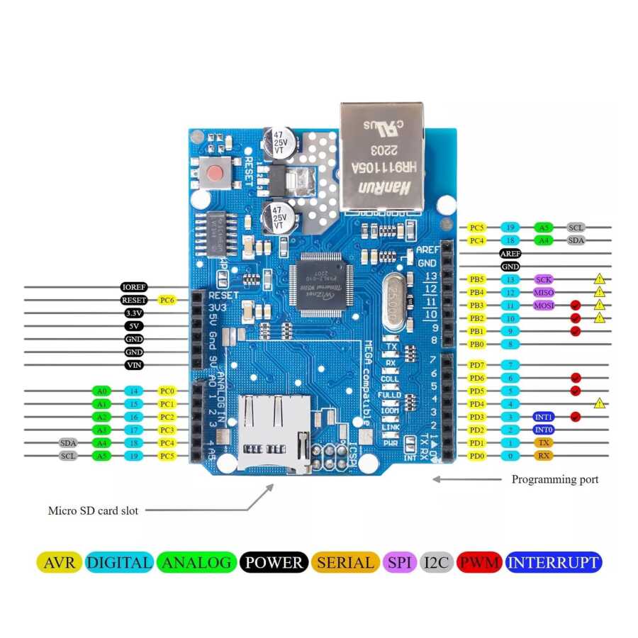 SD kart genişletme modülüne sahip W5100 kolay depolama ve verilere erişim sağlar