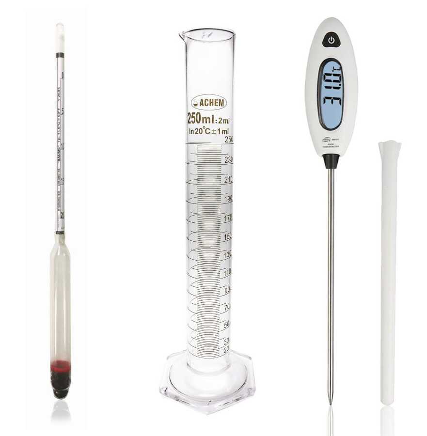 Eurodensimeter 0-20 Bomemetre Hidrometre 250ml Cam Mezür ve GM1311 Prob Termometre Seti
