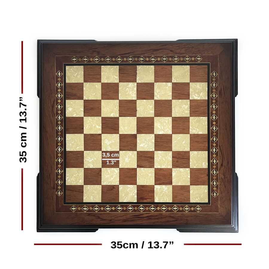 Helena Wood Art El Yapımı Flat Ayaklı Ahşap Satranç Tablası Gül 35 cm / 13.7”