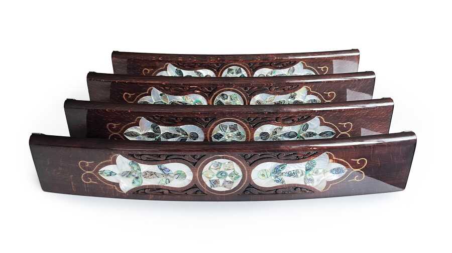 Doğal ahşap, yeşil-beyaz okyanus renginde bakır ve sedef işlemeli