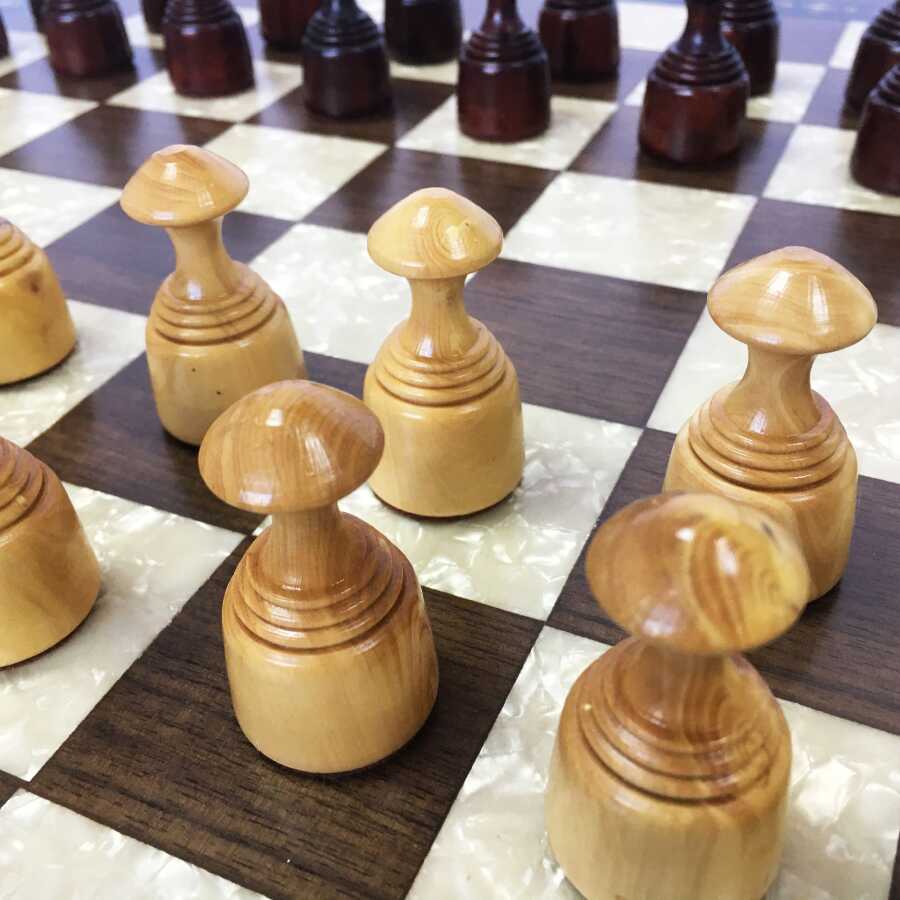 El Yapımı Masif Ahşap Dama Takımı 48x48 cm / 18.8x18.8 inç