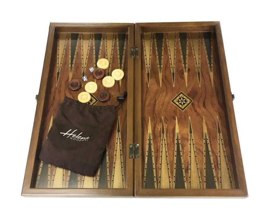 Helena Wood Art İşlemeli Klasik Tavla Büyük Boy