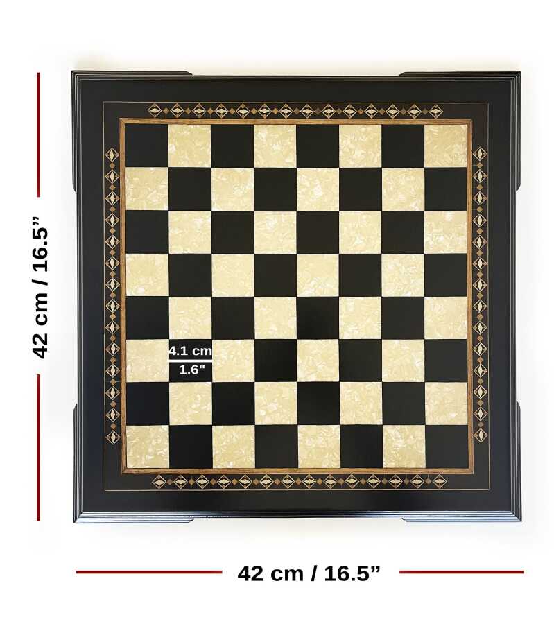 Helena Wood Art El Yapımı Masif Ahşap Koyu Satranç Tablası 42 cm / 16.5"