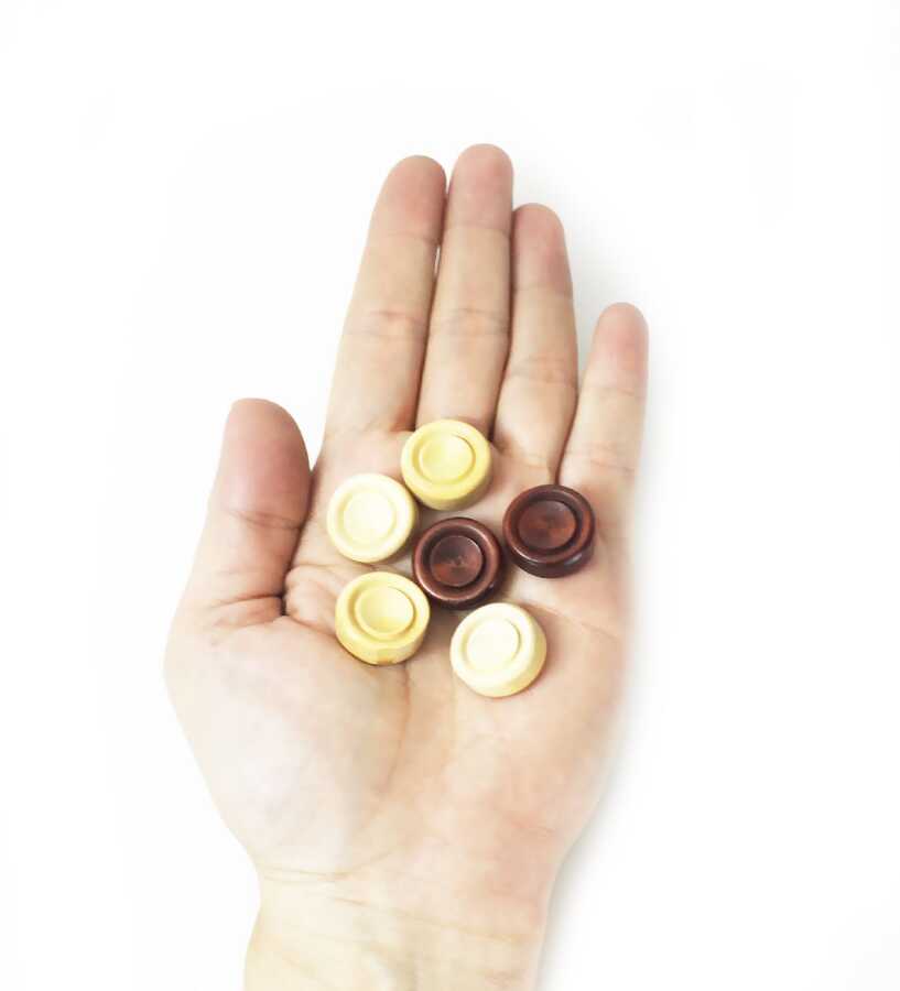 MODEL: 23363El yapımı Şimşir Mini Tavla Pulu 19 mm Ahşap Şimşir Pul 15 Adet Açık + 15 Adet Koyu Pul çapı: 19 mm