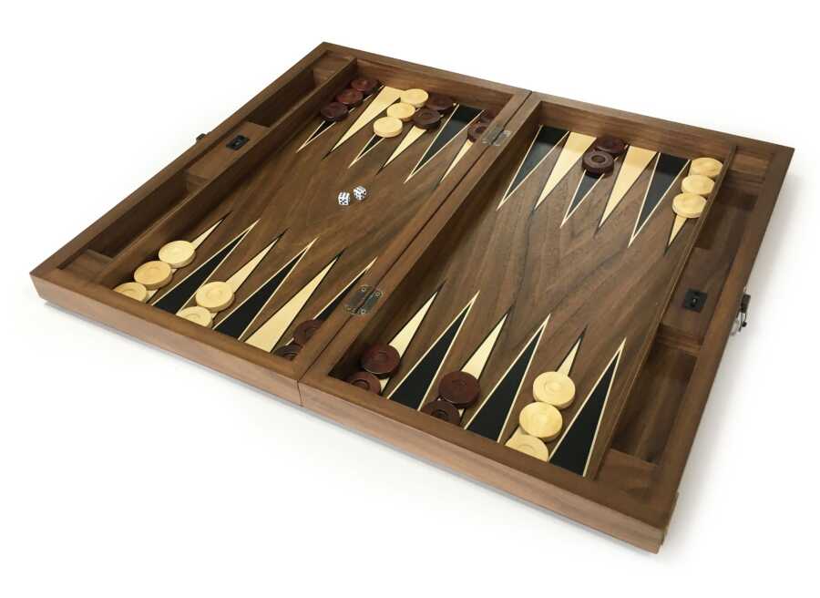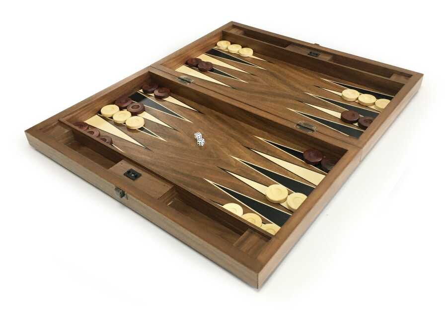 Helena Wood Art Tuana Geniş Ceviz Tavla Takımı Kareli