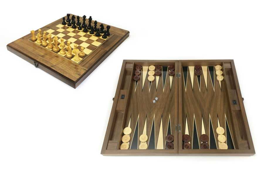 Helena Wood Art Tuana Geniş Ceviz Tavla ve Satranç Takımı Seti