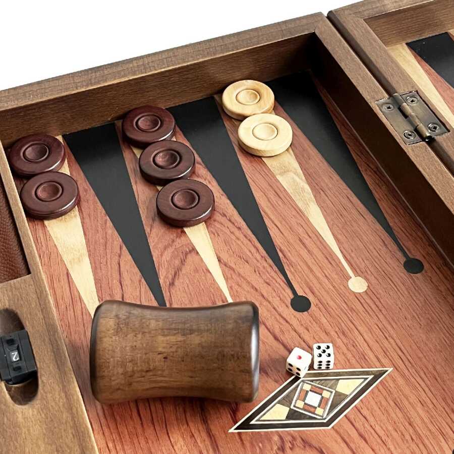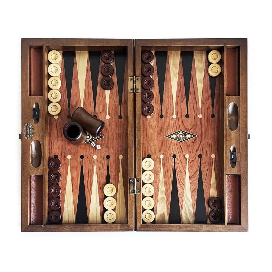 Helena Wood Art Klasik Geniş Tavla Gül Mozaik Numaratörlü Masif Ahşap El Yapımı Tavla Seti