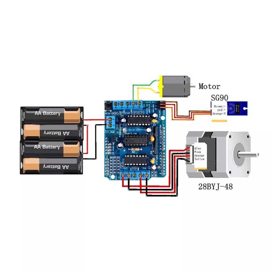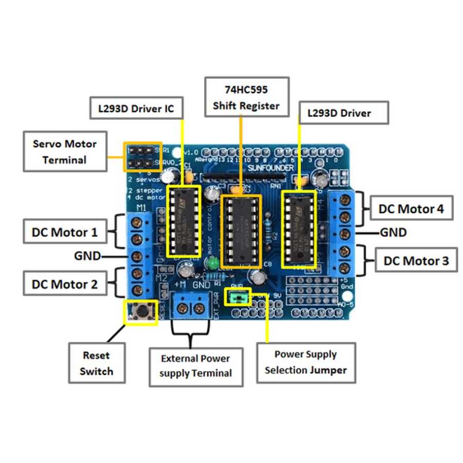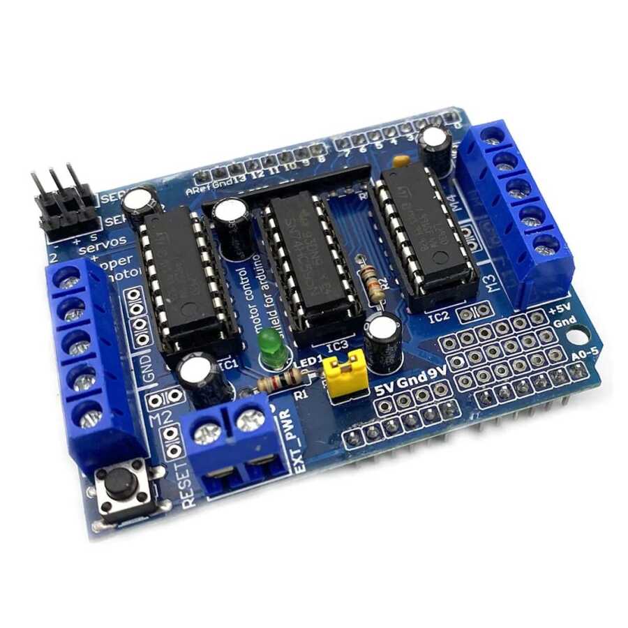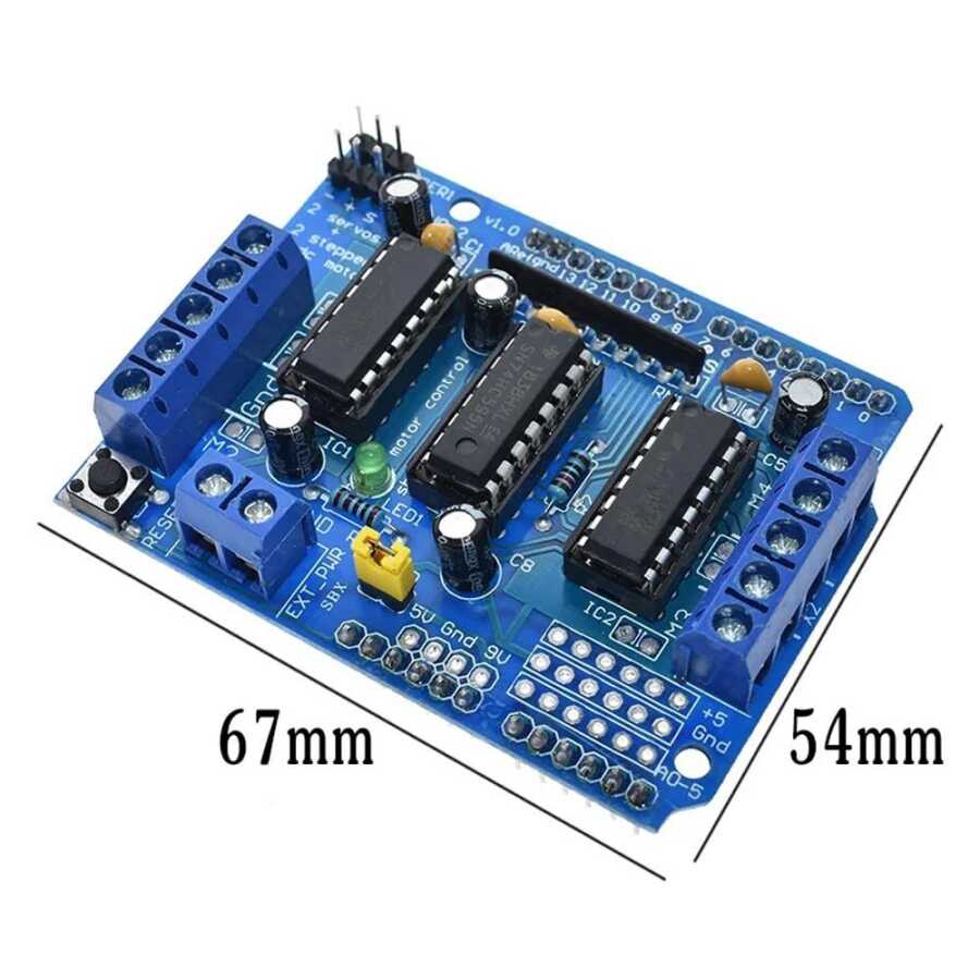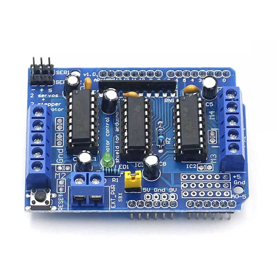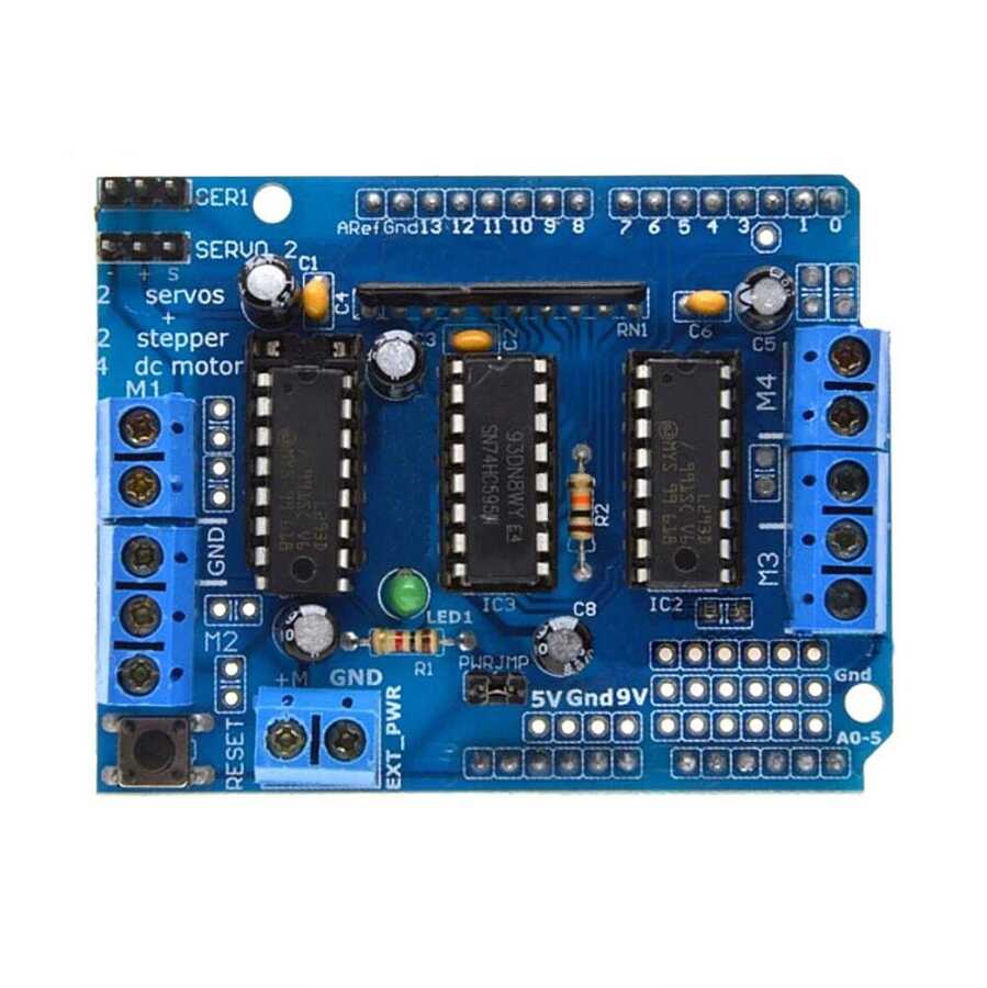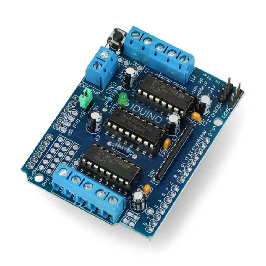 Modül, Arduino kitleri kullanarak dört DC motor (DC) veya iki step motor kontrol etmenizi sağlar.