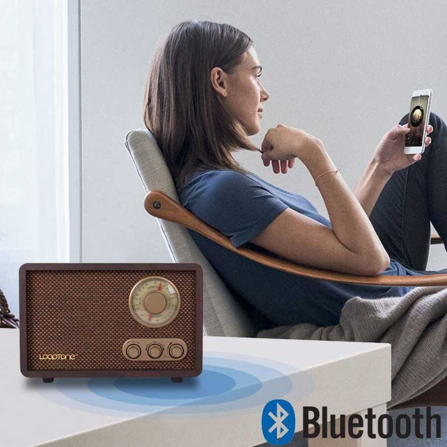İster masanızda ister rafınızda kullanabileceğiniz, çok şık retro görünümlü ahşap kaplama bluetooth radyo