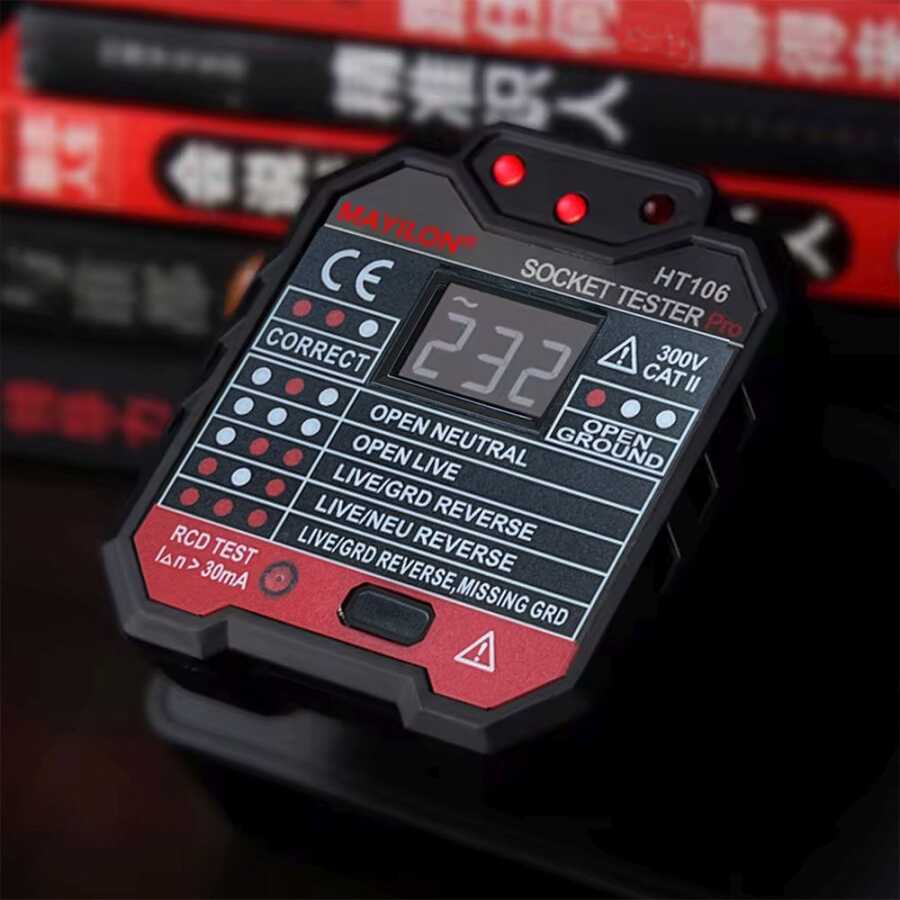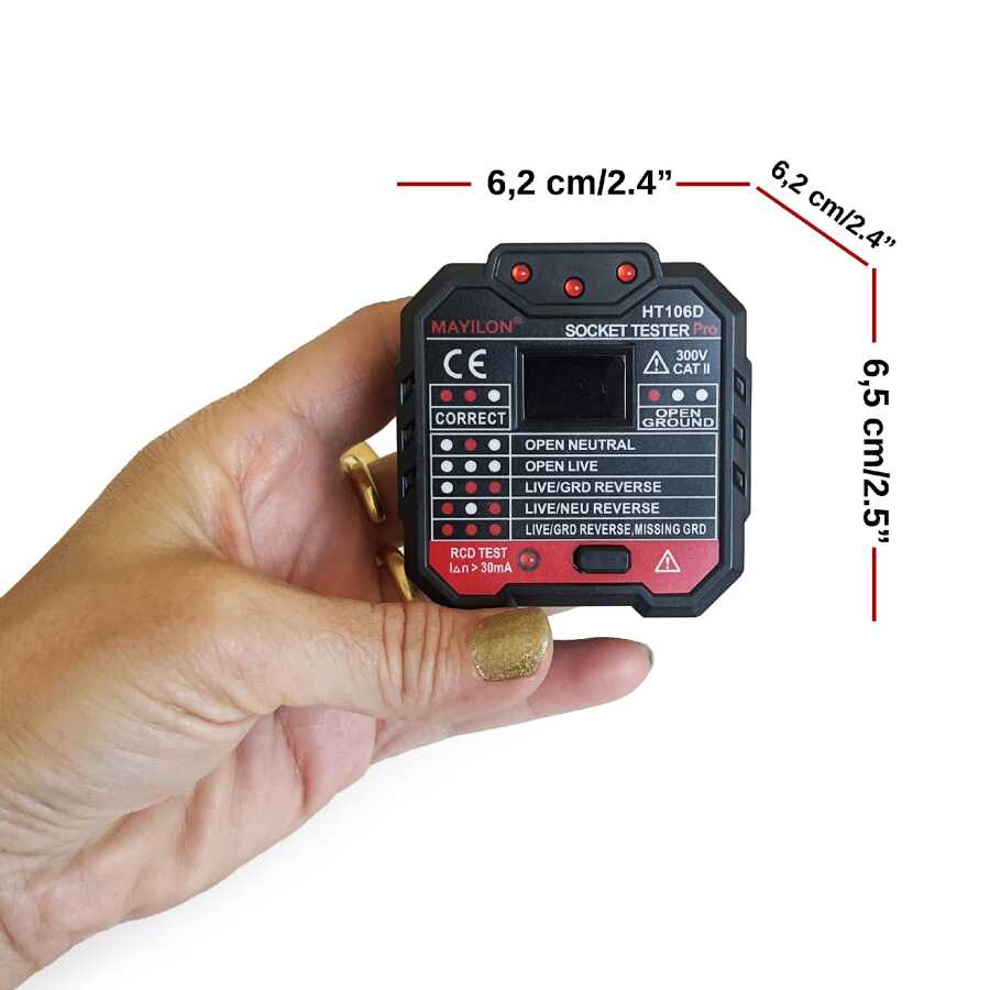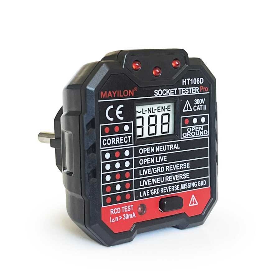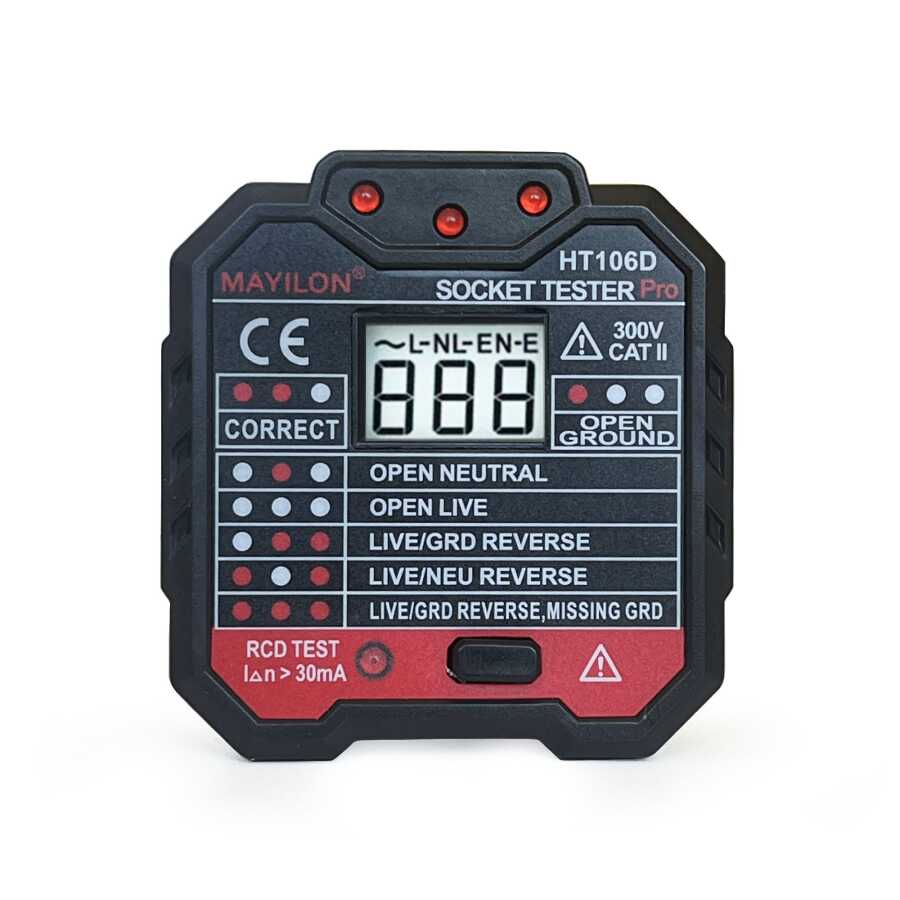 Mayilon Dijital Priz Soket Test Cihazı Voltaj Amper Ölçüm