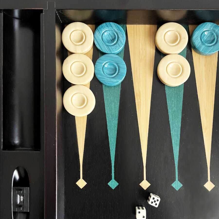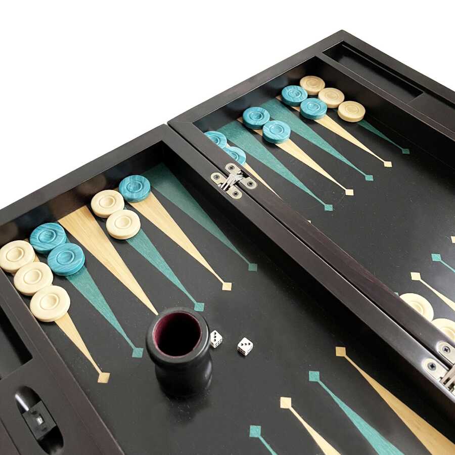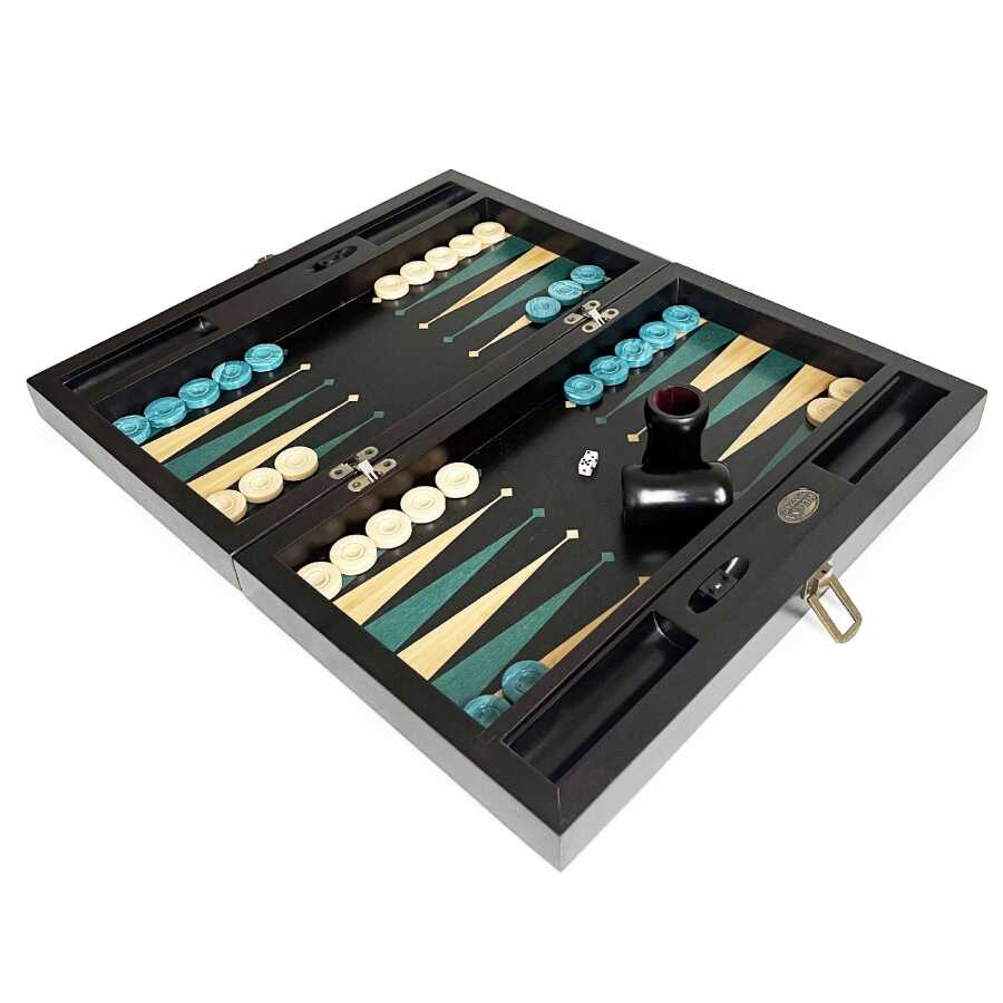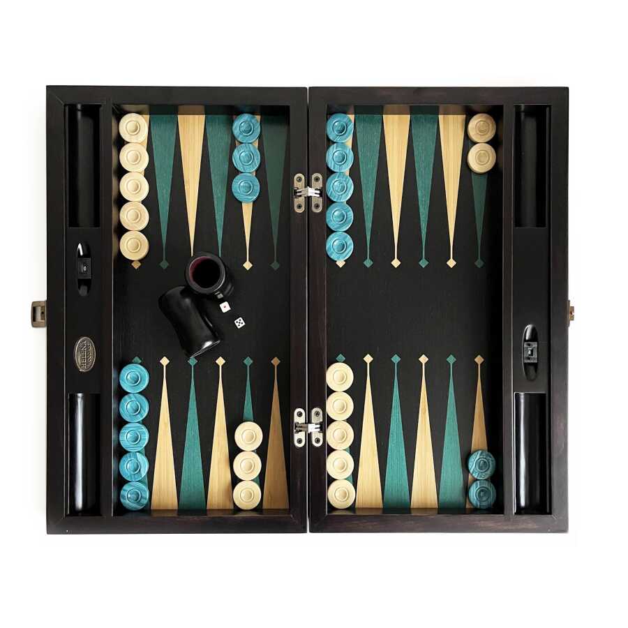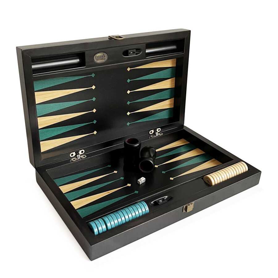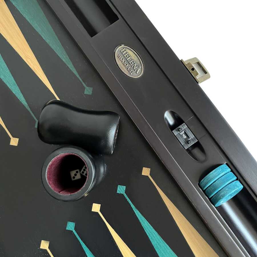 Helena Wood Art MetaBlack Green Numaratörlü Masif Ahşap El Yapımı Tavla Seti Siyah Yeşil