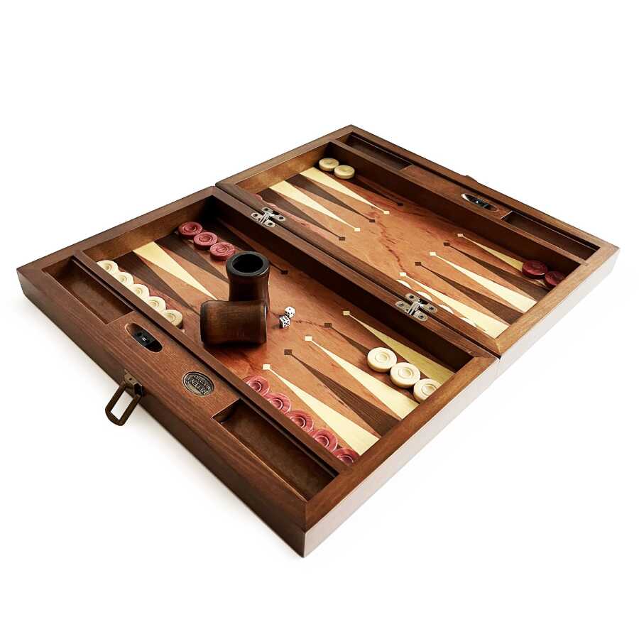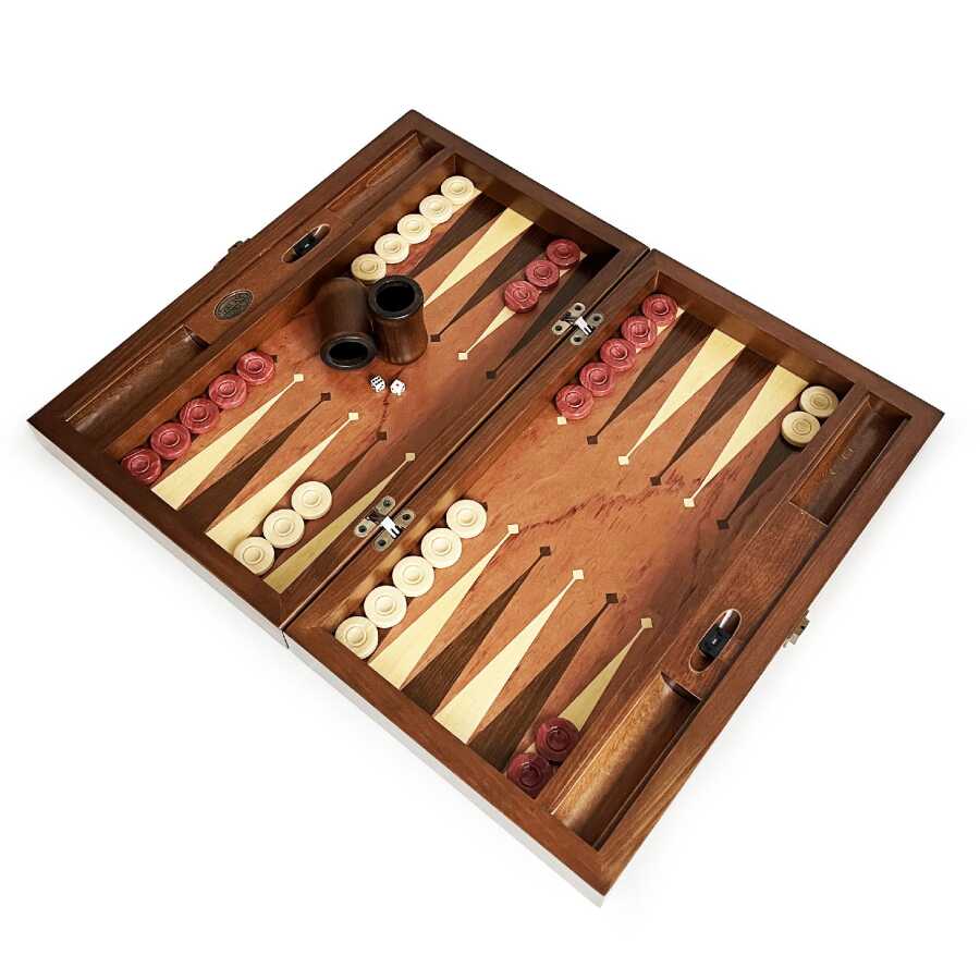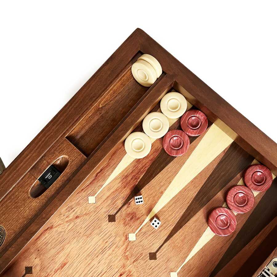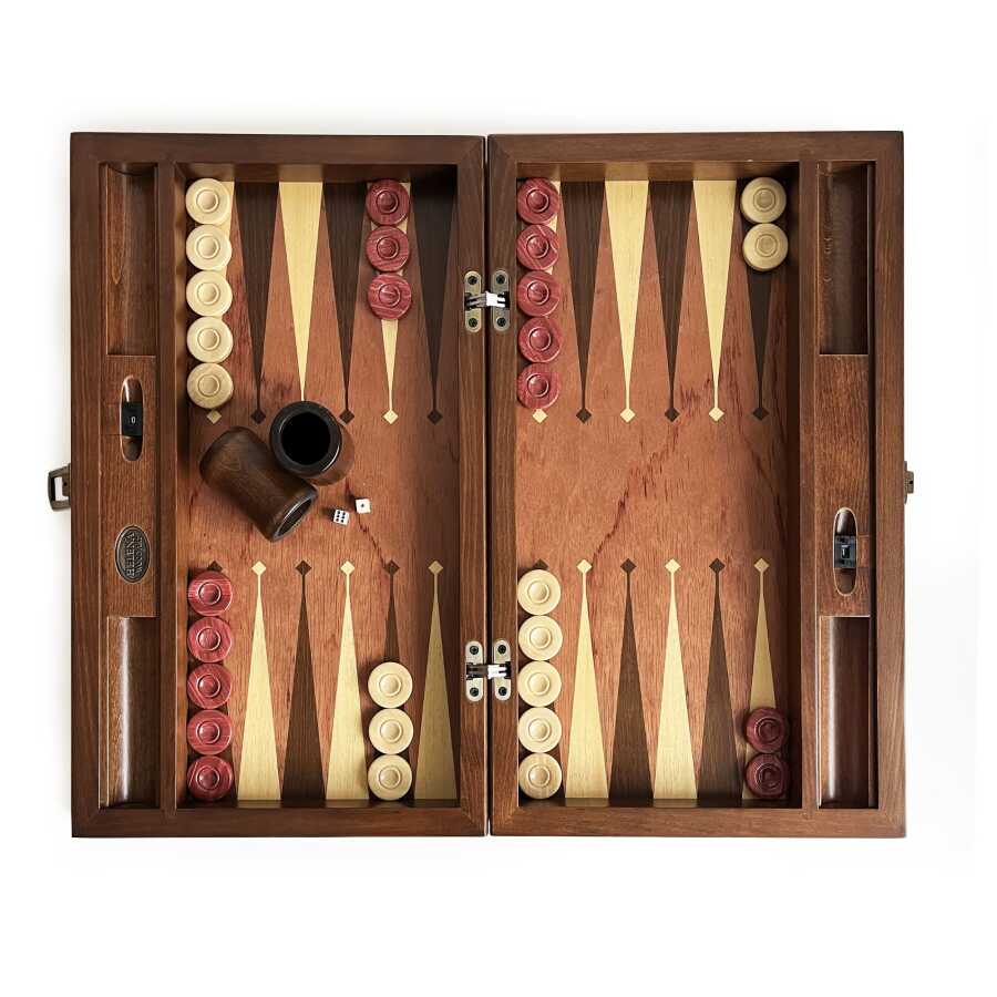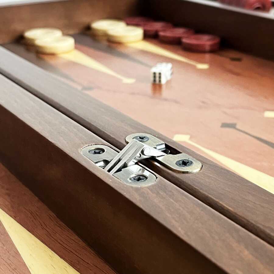 Helena Wood Art Meta Paduk Masif Ahşap Numaratörlü El Yapımı Tavla Seti Kırmızı