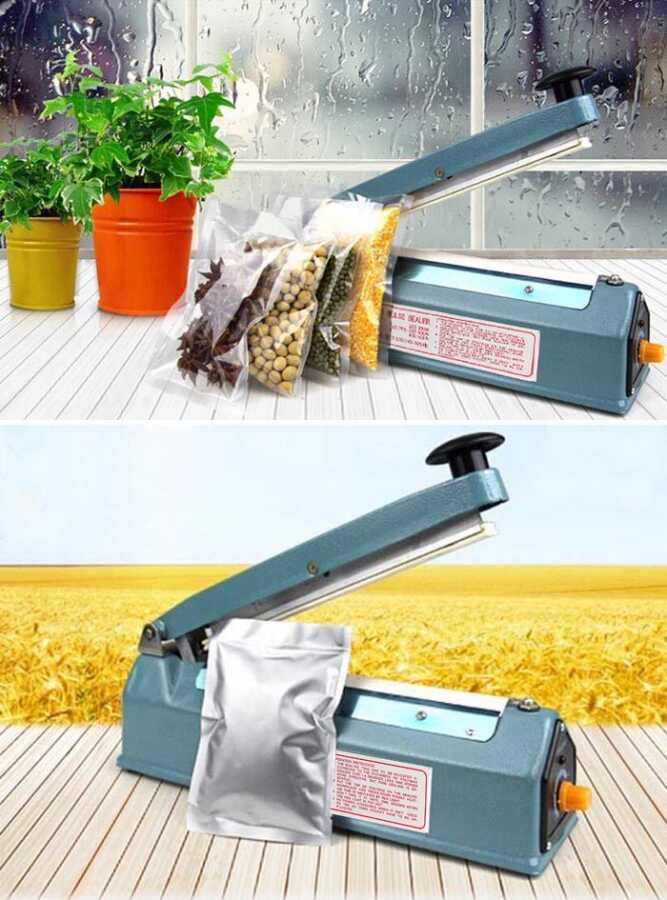 Metal gövdeli, sıcaklık ayarlı 20cm poşet ağzı kapatma, naylon eritme yapıştırma makinası.