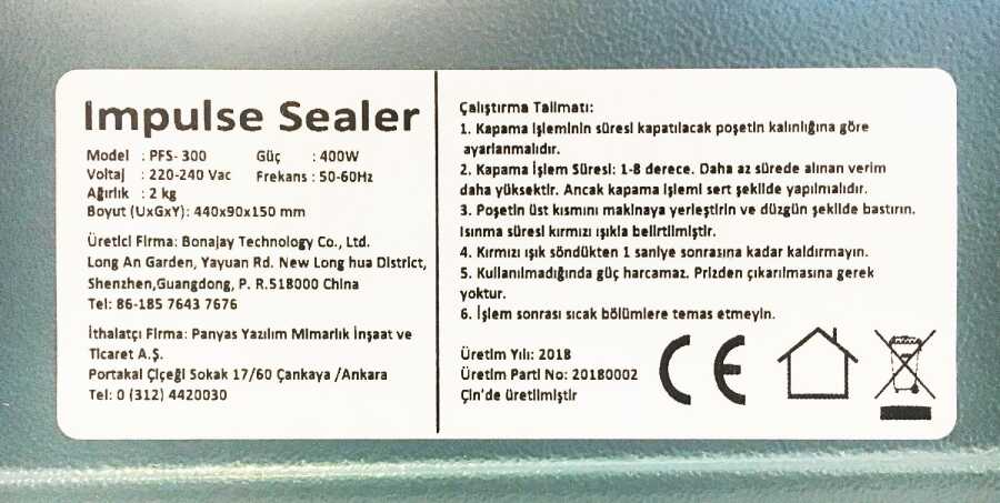 Metal gövdeli, sıcaklık ayarlı 30cm poşet ağzı kapatma, naylon eritme yapıştırma makinası.