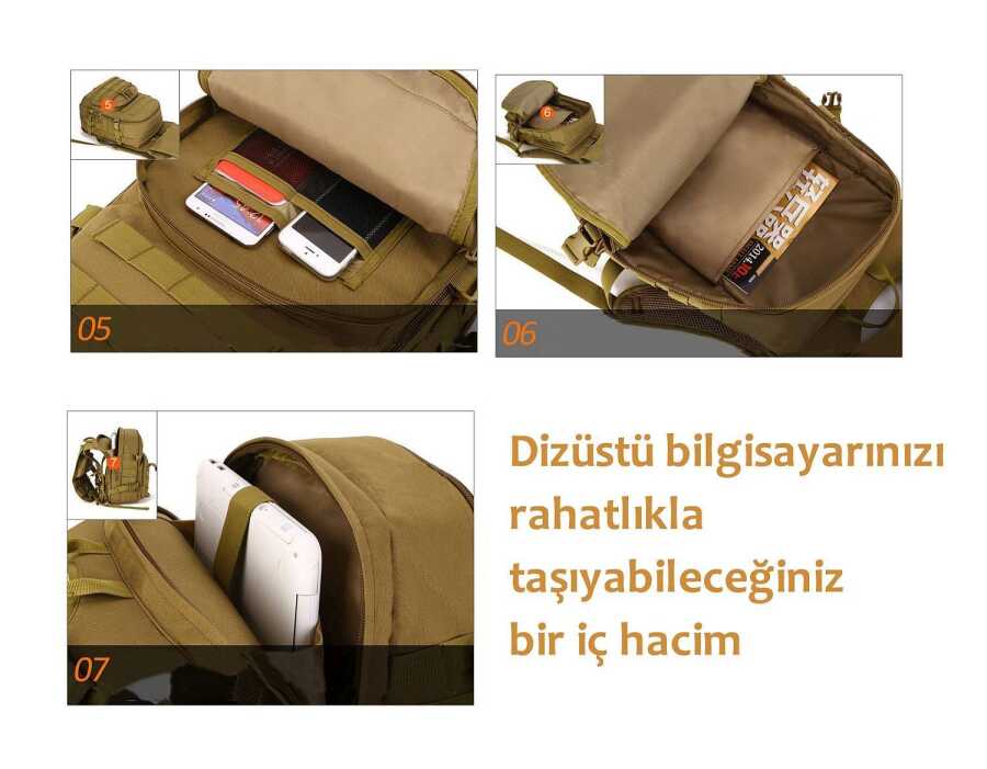 Göğüs ve bel bölümüne ek olarak ön ve yanlarda bulunan ayarlanabilir sıkıştırma kemerleri sayesinde mat, çadır, tulum gibi kamp malzemelerini taşıma kolaylığı