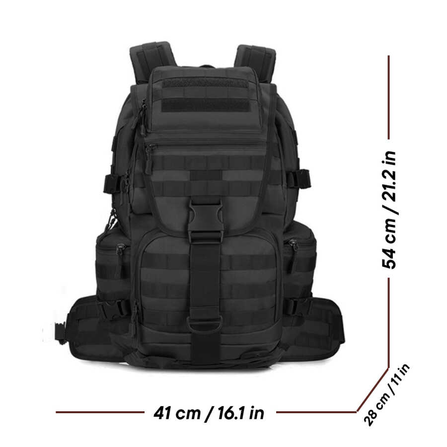 Suya ve yırtılmalara dayanıklı kumaşı, ihtiyaca göre genişletilebilir yapısı, su geçirmezlik için özel olarak tasarlanmış cep ve kapak tasarımı, seyahat, doğa sporları, yürüyüş, kamp, avcılık, dağcılık için ideal, sağlam yapılı sırt çantası