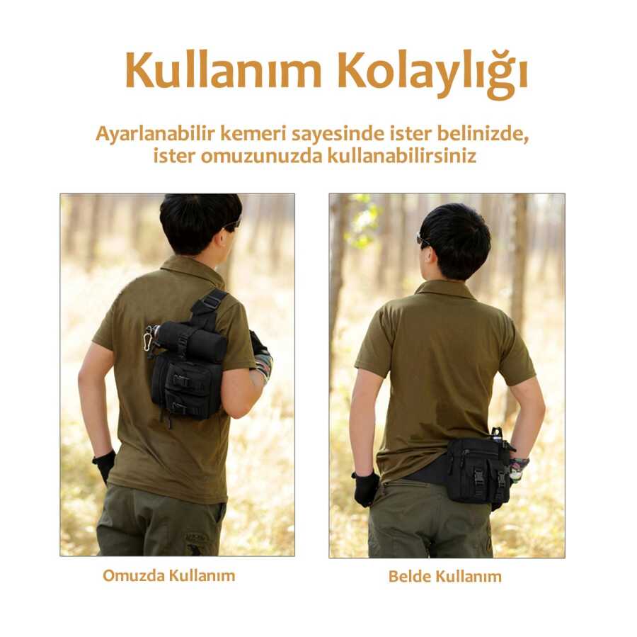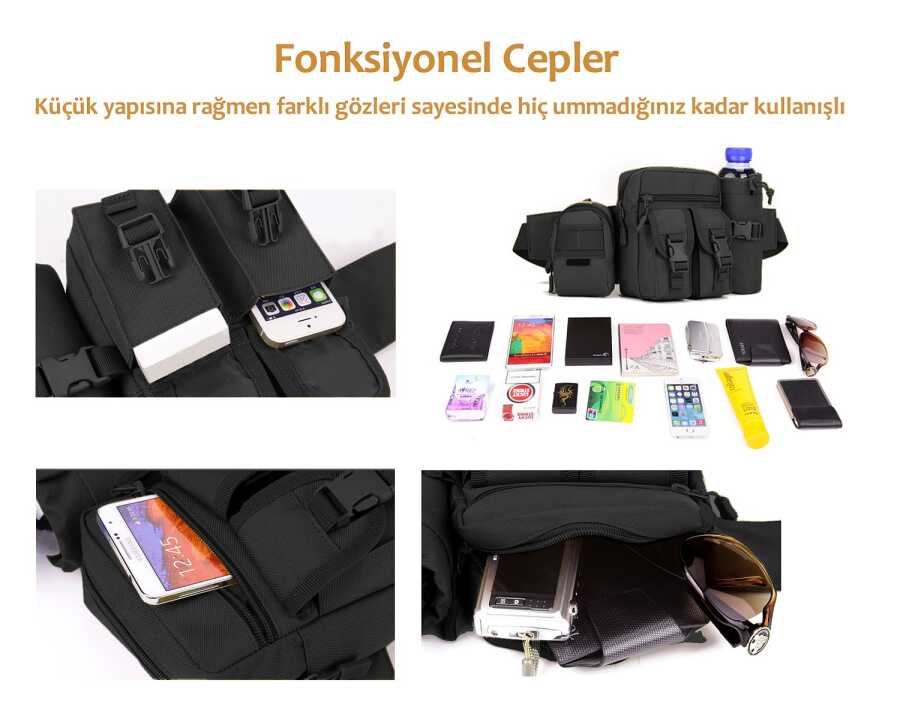 Kompakt tasarımı ile küçük boy, çok fonksiyonlu, suya dayanıklı, doğa sporları, dağcılık, kampçılık, bisiklet veya günlük kullanım için ideal bir bel çantası