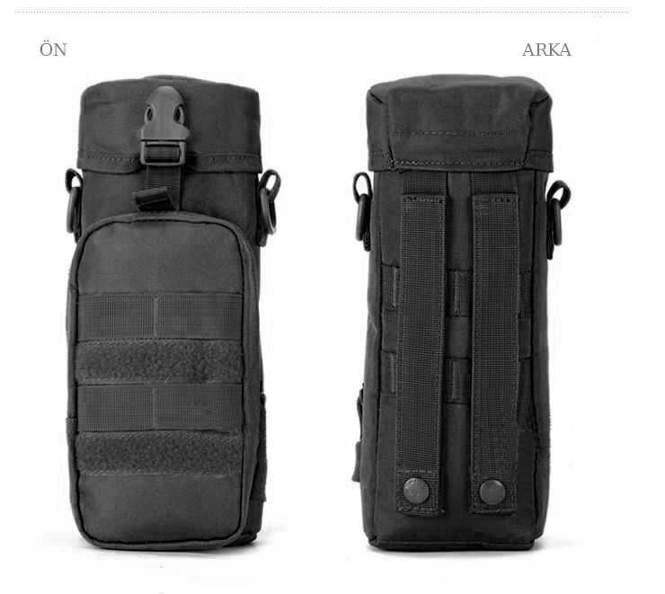 Arka tarafında bulunan özel bağlantısı ile uyumlu olan sırt, bel veya omuz çantalarına takarak ya da askısı ile omuzunuzda taşıyarak kullanabileceğiniz, suluk, cep telefonu, cüzdan ve anahtarlık koyabileceğiniz, şık ve kullanışlı bir taşıma çantası