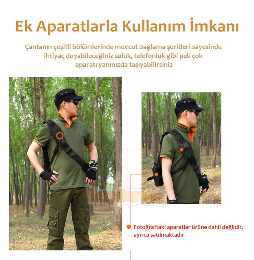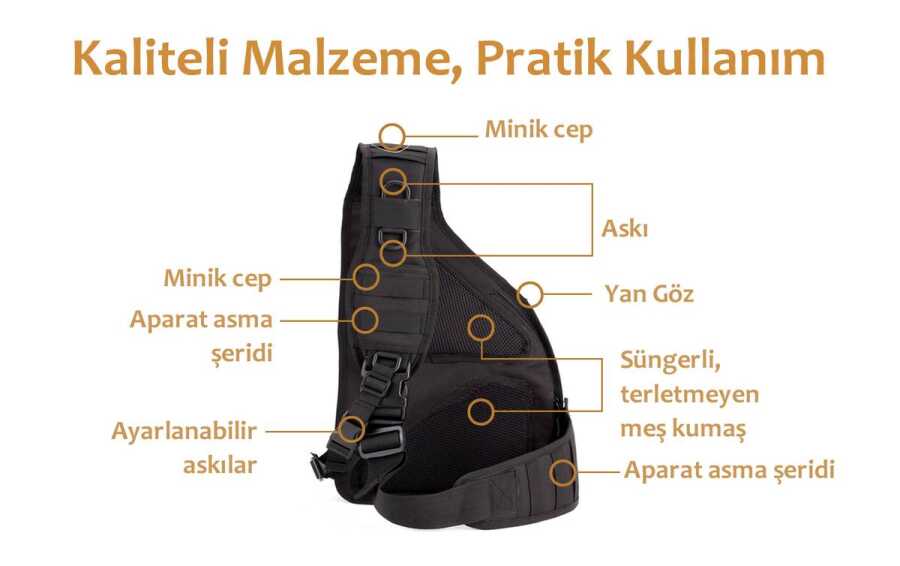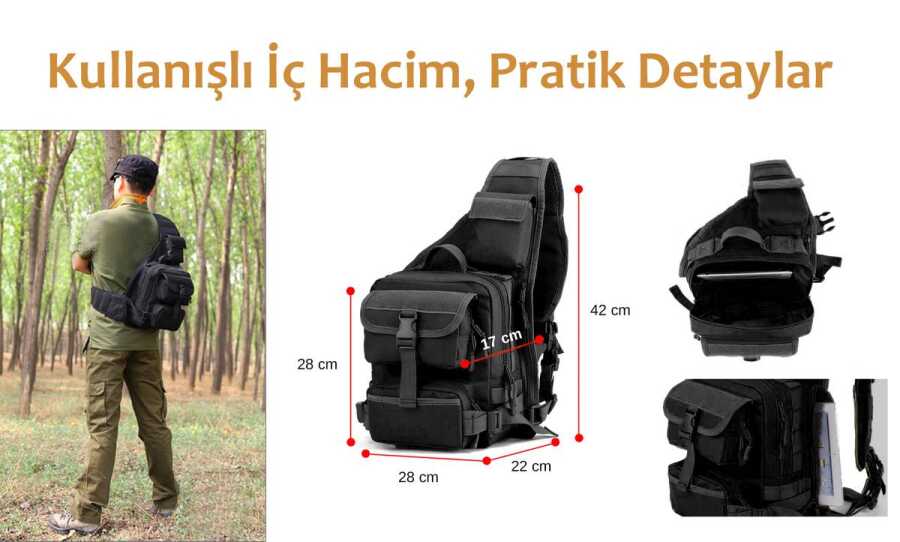 Suya dayanıklı malzemeden yapılmış omuz çantası. Açık hava sporlar, yürüyüş, dağcılık, kamp ve tırmanışlarda rahatlıkla kullanılabilir