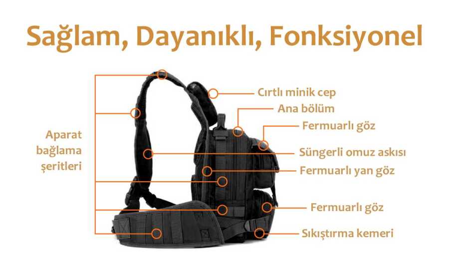 Cep Sayısı | 3 ön (2 fermuar, 1 cırt), 1 ana bölüm, 1 iç, 1 arka (fermuar) |