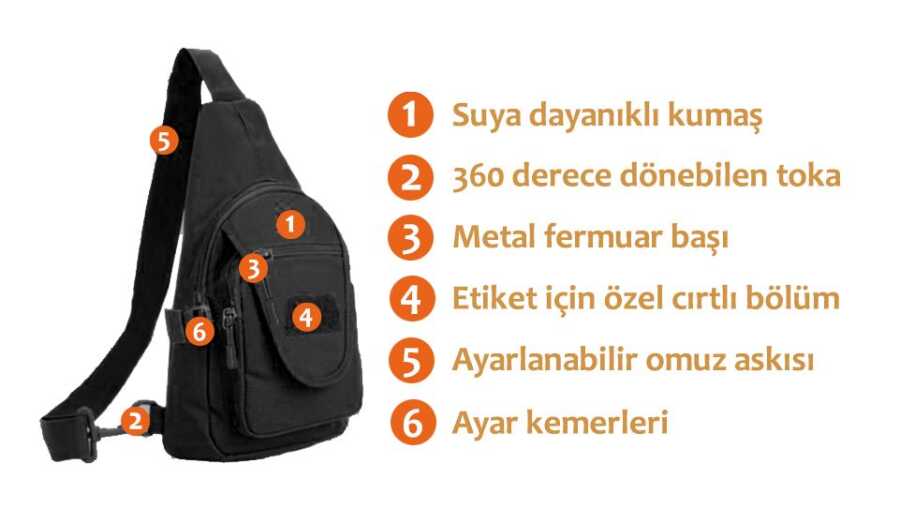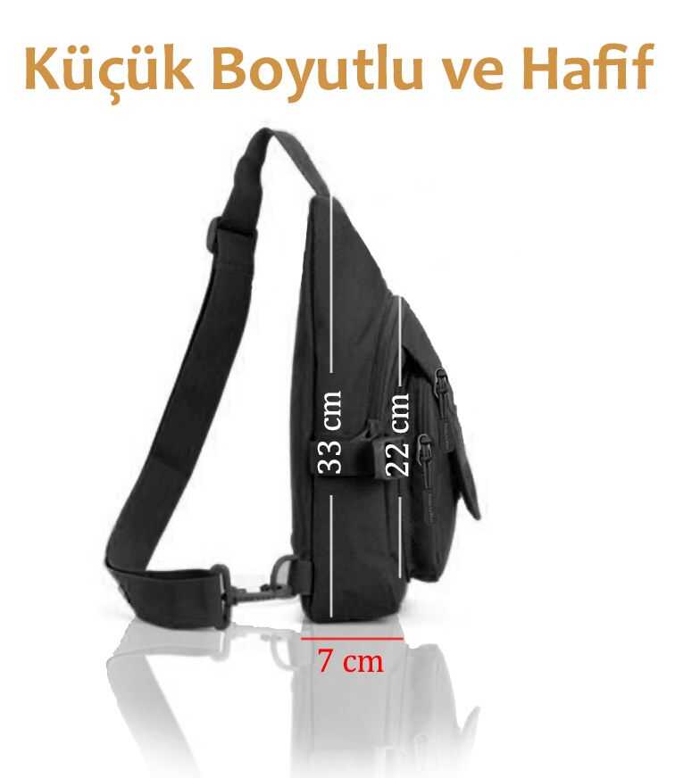 Çok fonksiyonlu, yırtılmalara ve suya dayanıklı, 0,3 kg'lık hafifliği, 7*22*33 cm lik minik boyutuyla yürüyüş, balıkçılık, açık hava sporlar, dağcılık, kamp ve tırmanışlar için ideal, küçük bir omuz çantası