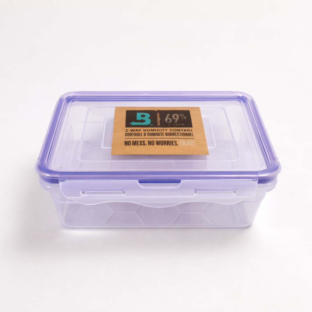 Puro Saklama Kutusu XS-850 ml, Hava Geçirmez Sızdırmaz 1 Yıllık Nem Koruma (Boveda %69 8g Dahil)